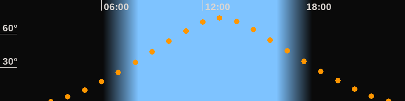 | Höchster Stand (Kulmination) | 13:03 Uhr (h = 74,2°) |