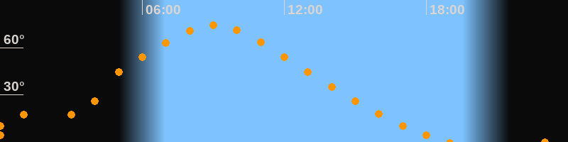 | Höchster Stand (Kulmination) | 09:00 Uhr (h = 74,2°) |