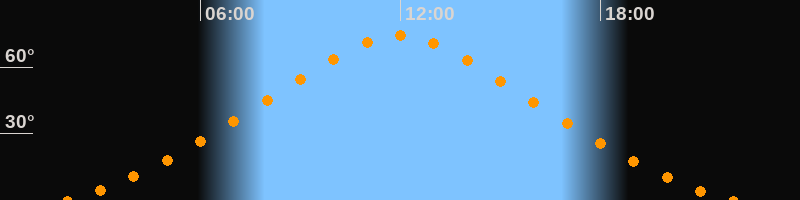 | Höchster Stand (Kulmination) | 11:57 Uhr (h = 74,2°) |