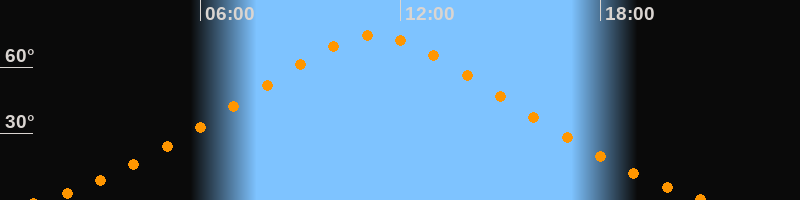 | Höchster Stand (Kulmination) | 11:14 Uhr (h = 74,2°) |