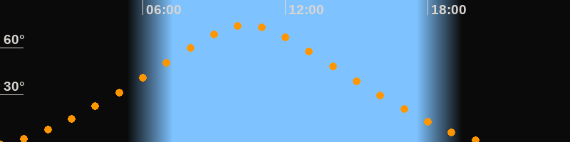 | Höchster Stand (Kulmination) | 10:23 Uhr (h = 74,2°) |