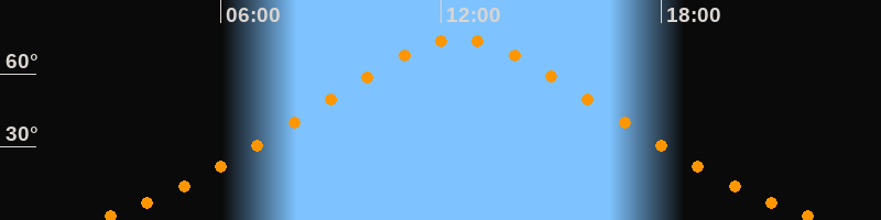 | Höchster Stand (Kulmination) | 12:30 Uhr (h = 74,2°) |