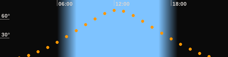 | Höchster Stand (Kulmination) | 12:18 Uhr (h = 74,2°) |