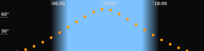 | Höchster Stand (Kulmination) | 12:15 Uhr (h = 74,2°) |