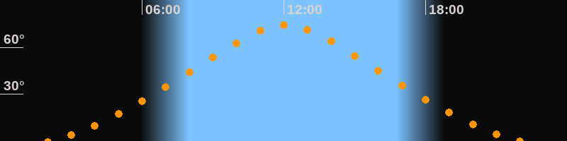 | Höchster Stand (Kulmination) | 12:03 Uhr (h = 74,2°) |