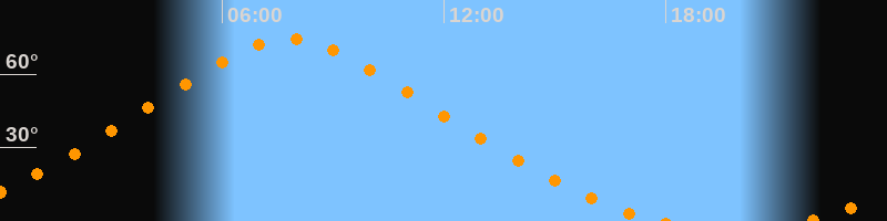 | Höchster Stand (Kulmination) | 07:49 Uhr (h = 74,2°) |