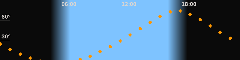 | Höchster Stand (Kulmination) | 17:43 Uhr (h = 74,2°) |