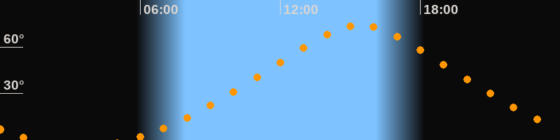 | Höchster Stand (Kulmination) | 15:25 Uhr (h = 74,2°) |