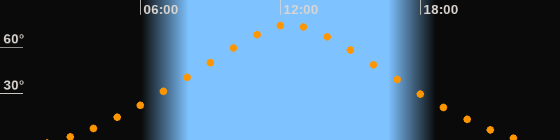 | Höchster Stand (Kulmination) | 12:25 Uhr (h = 74,2°) |