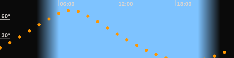 | Höchster Stand (Kulmination) | 07:15 Uhr (h = 74,2°) |