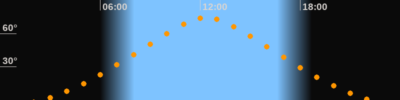 | Höchster Stand (Kulmination) | 12:22 Uhr (h = 74,2°) |