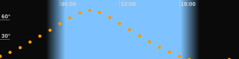 | Höchster Stand (Kulmination) | 09:01 Uhr (h = 74,2°) |