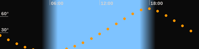 | Höchster Stand (Kulmination) | 17:49 Uhr (h = 74,2°) |
