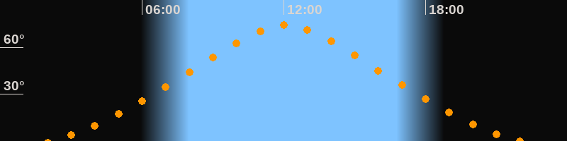 | Höchster Stand (Kulmination) | 12:04 Uhr (h = 74,2°) |
