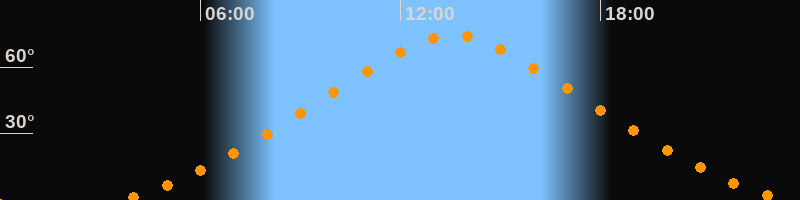 | Höchster Stand (Kulmination) | 13:35 Uhr (h = 74,2°) |