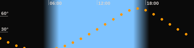 | Höchster Stand (Kulmination) | 17:00 Uhr (h = 74,2°) |