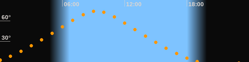 | Höchster Stand (Kulmination) | 09:16 Uhr (h = 74,2°) |