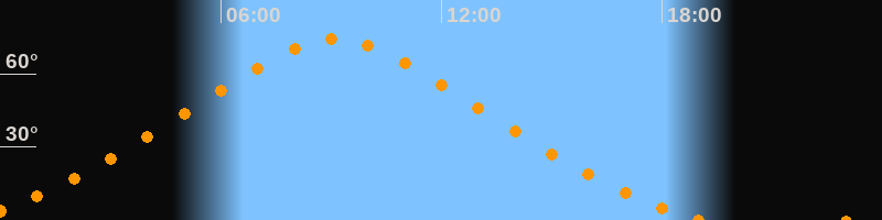 | Höchster Stand (Kulmination) | 09:07 Uhr (h = 74,2°) |