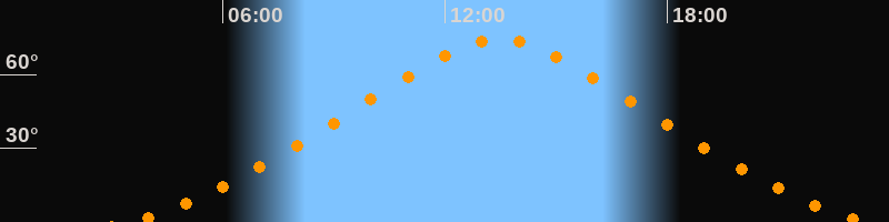 | Höchster Stand (Kulmination) | 13:27 Uhr (h = 74,2°) |
