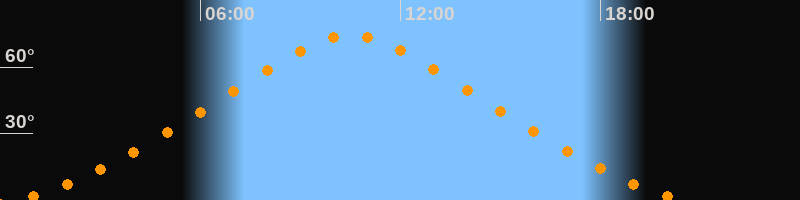 | Höchster Stand (Kulmination) | 10:31 Uhr (h = 74,2°) |