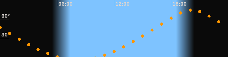 | Untergang | 06:17 Uhr im Nordwesten (αAz = 336,6°) |