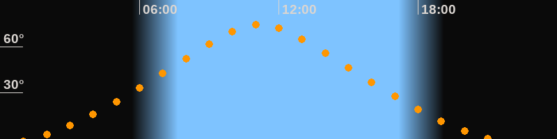 | Höchster Stand (Kulmination) | 11:11 Uhr (h = 74,2°) |