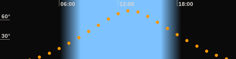 | Höchster Stand (Kulmination) | 13:14 Uhr (h = 74,2°) |