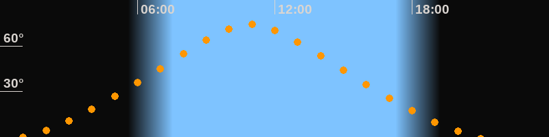 | Höchster Stand (Kulmination) | 10:55 Uhr (h = 74,2°) |