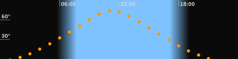 | Höchster Stand (Kulmination) | 11:19 Uhr (h = 74,2°) |