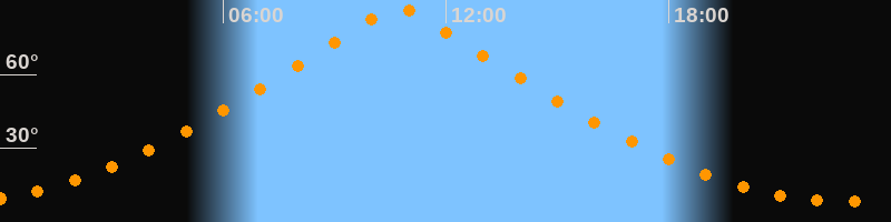 | Höchster Stand (Kulmination) | 10:43 Uhr (h = 87°) |