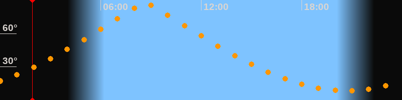 | Höchster Stand (Kulmination) | 08:40 Uhr (h = 87°) |