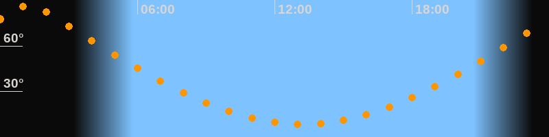 | Höchster Stand (Kulmination) | 01:12 Uhr (h = 87°) |
