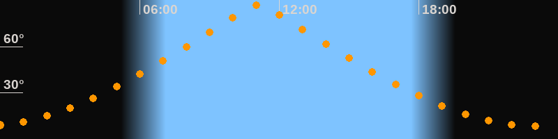 | Höchster Stand (Kulmination) | 11:05 Uhr (h = 87°) |