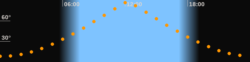 | Höchster Stand (Kulmination) | 12:13 Uhr (h = 87°) |