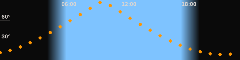 | Höchster Stand (Kulmination) | 10:12 Uhr (h = 87°) |
