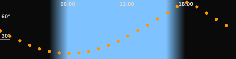 | Höchster Stand (Kulmination) | 18:58 Uhr (h = 87°) |