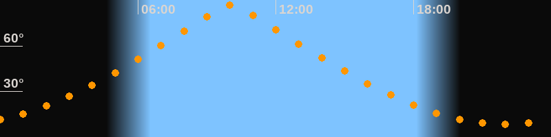 | Höchster Stand (Kulmination) | 10:03 Uhr (h = 87°) |