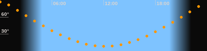 | Höchster Stand (Kulmination) | 00:05 Uhr (h = 87°) |
