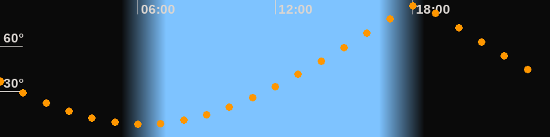 | Höchster Stand (Kulmination) | 18:12 Uhr (h = 87°) |