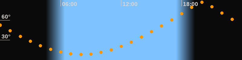| Höchster Stand (Kulmination) | 20:03 Uhr (h = 87°) |