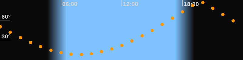 | Höchster Stand (Kulmination) | 19:47 Uhr (h = 87°) |