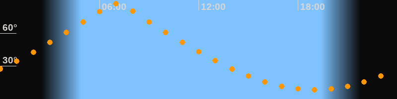 | Höchster Stand (Kulmination) | 07:00 Uhr (h = 87°) |