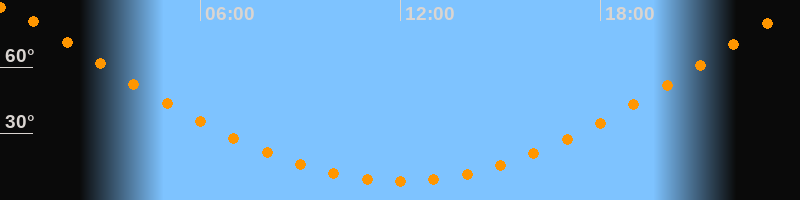 | Höchster Stand (Kulmination) | 00:00 Uhr (h = 87°) |