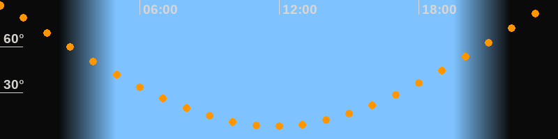 | Höchster Stand (Kulmination) | 23:48 Uhr (h = 87°) |