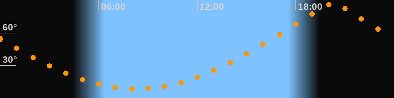 | Höchster Stand (Kulmination) | 20:15 Uhr (h = 87°) |