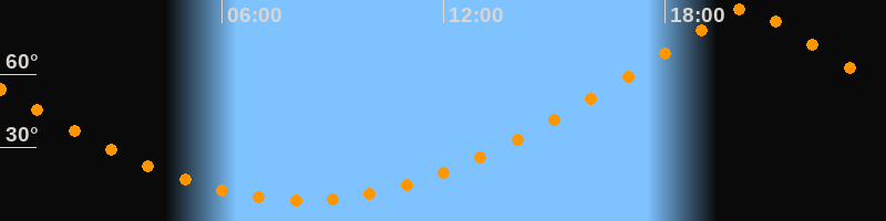 | Höchster Stand (Kulmination) | 20:11 Uhr (h = 87°) |
