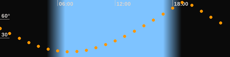 | Höchster Stand (Kulmination) | 19:13 Uhr (h = 87°) |