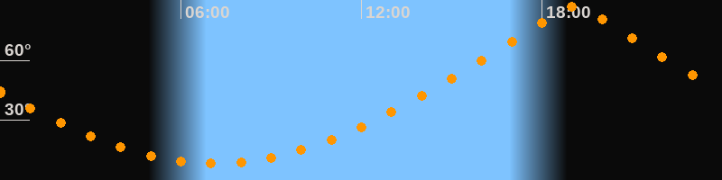 | Höchster Stand (Kulmination) | 19:06 Uhr (h = 87°) |