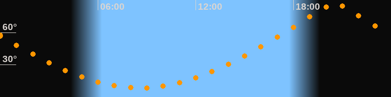 | Höchster Stand (Kulmination) | 20:33 Uhr (h = 87°) |