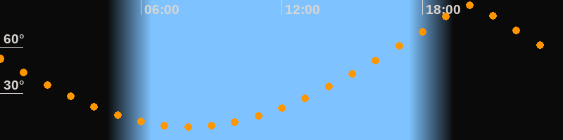 | Höchster Stand (Kulmination) | 20:02 Uhr (h = 87°) |